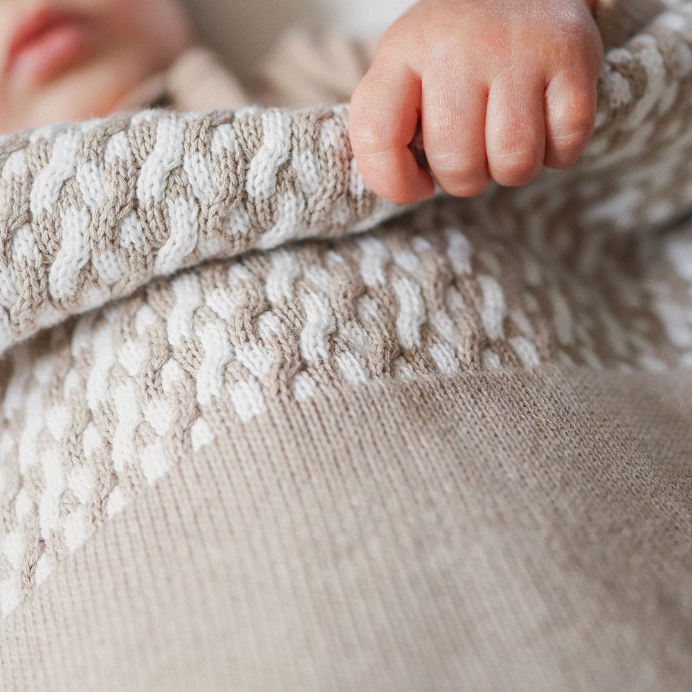 The Herringbone Blanket a refined, elevated feel to your little one’s essentials. Featuring a beautifully textured herringbone knit and crafted from premium, ultra-soft organic yarns, each blanket offers warmth, durability, and a touch of everyday luxury. With the option to add personalisation, it becomes a meaningful keepsake designed to be cherished from newborn days and beyond.