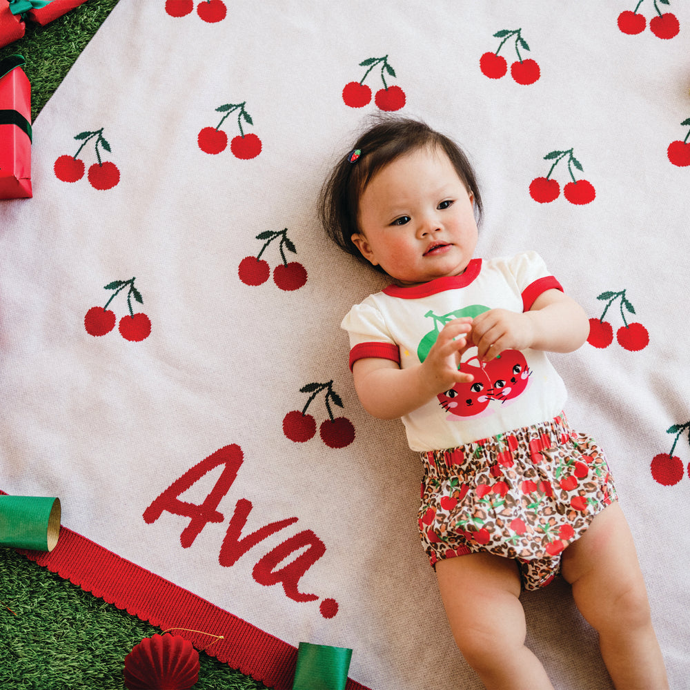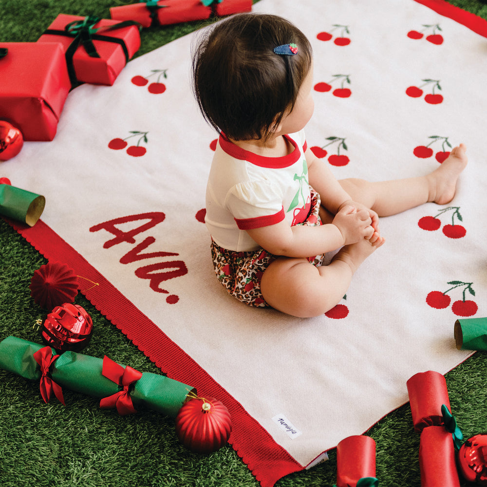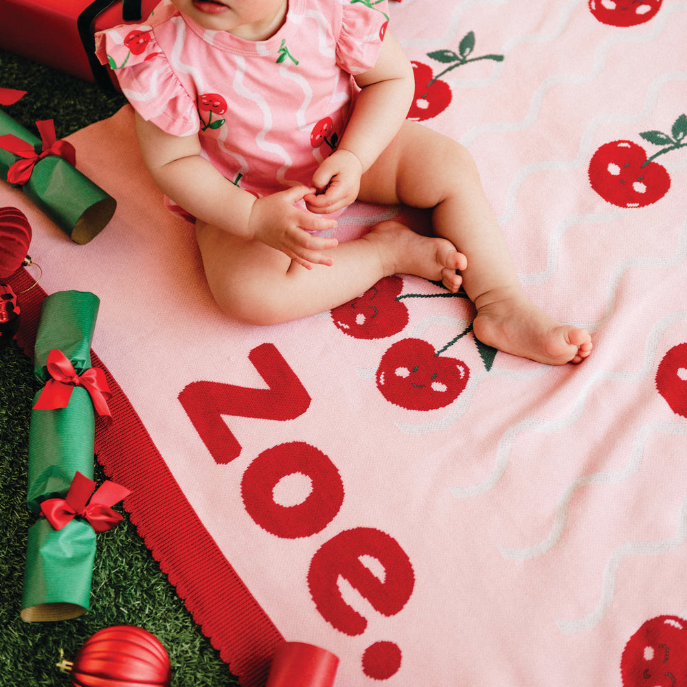 Each blanket becomes uniquely yours with your little one’s name, making it the perfect keepsake for new arrivals, heartfelt gifting or celebrating those everyday moments that feel a little bit magic. Thoughtfully designed, beautifully made and destined to be treasured long after the cherry-covered outfits are packed away.